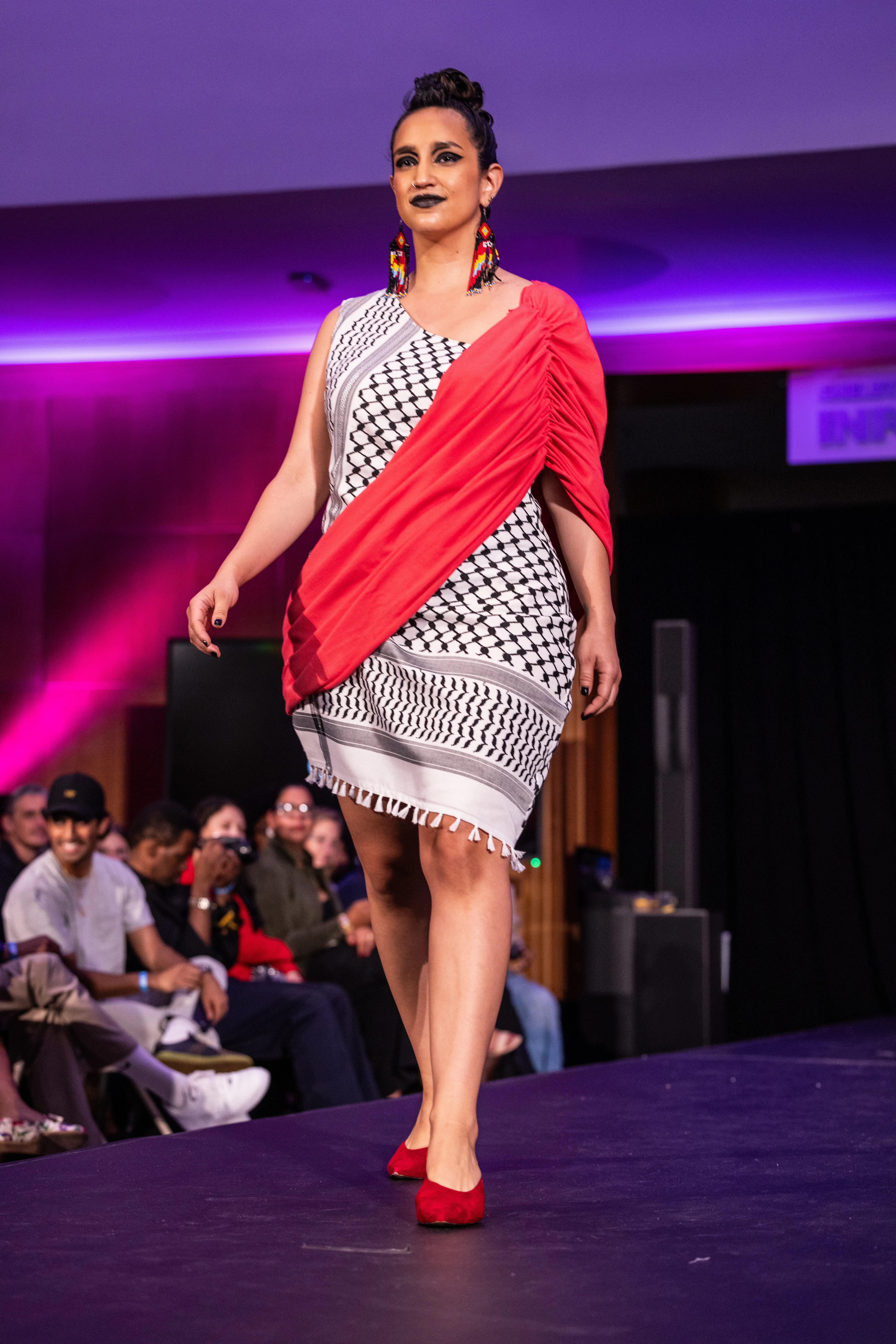 “Runways already have an audience and excitement—why not use that space to engage meaningfully? I view it as a form of public art, whether on the runway or on the street, where people wearing my designs make a statement beyond the conventional spaces for art and social commentary.” -Ronen